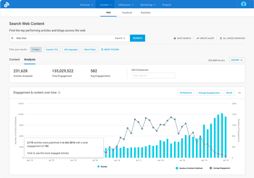 BuzzSumo focuses on content discovery and engagement analysis. By identifying the most shared and engaging content on social media platforms, you gain a deeper understanding of what resonates with your audience. This knowledge empowers you to craft content that captures attention and sparks conversations.