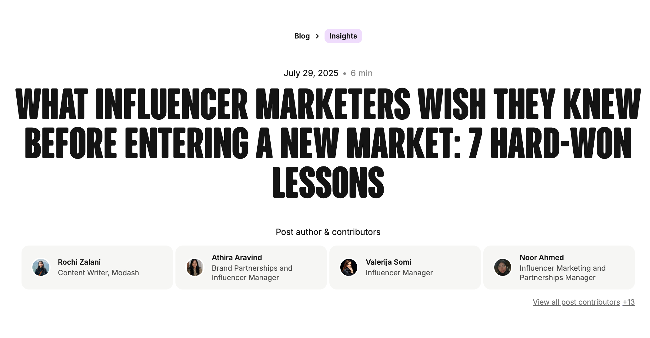 A great example of this in action: Modash does this really well by including contributor bios for everyone involved in their blogs — from writers to quoted experts. It adds human credibility to their content and signals authority, which makes it more appealing to both readers and (likely) LLMs.