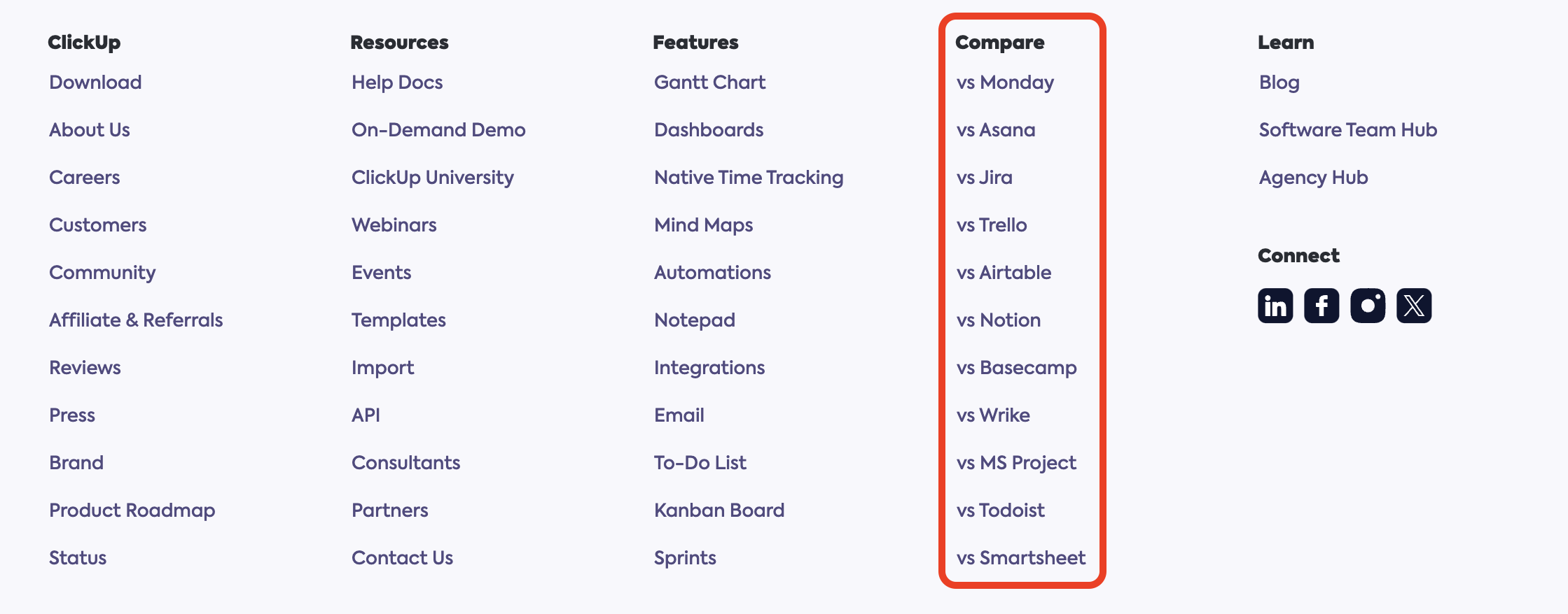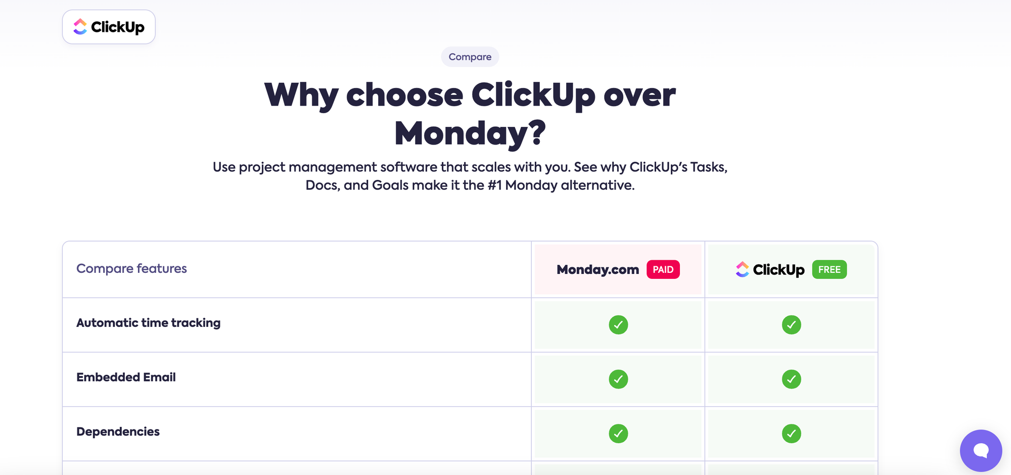 - Transparency: By openly comparing ClickUp with other tools, the company demonstrates transparency, which can build trust with potential users. They show confidence in their product by willingly placing it side-by-side with competitors.
